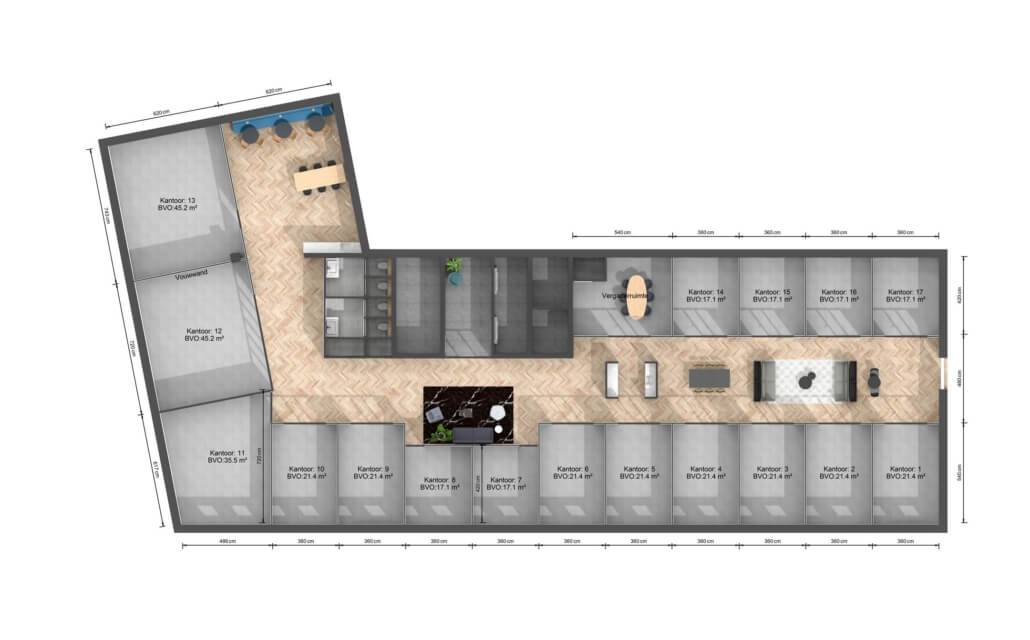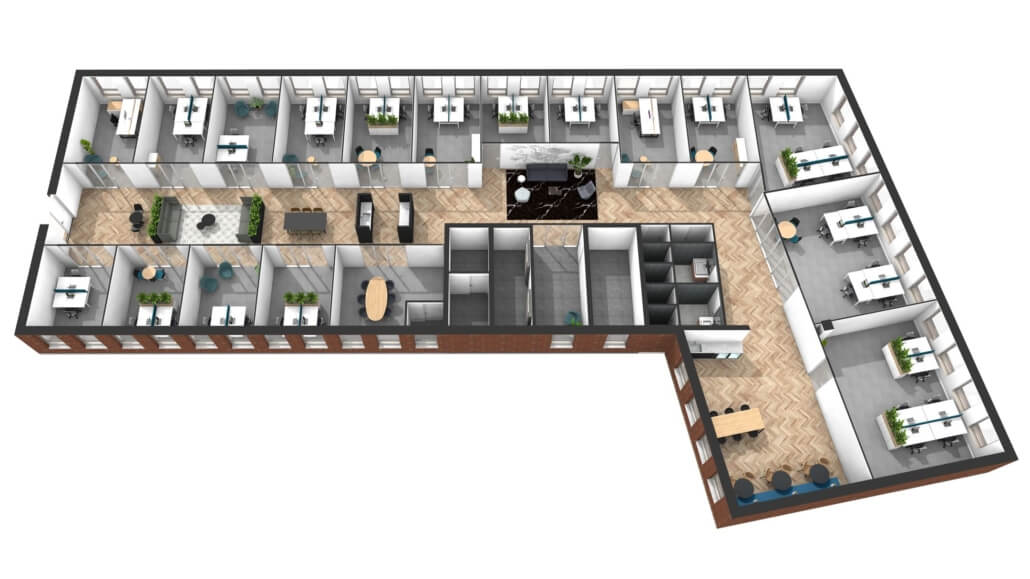 - Volledig ingerichte en afsluitbare werkruimtes