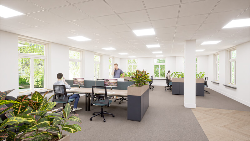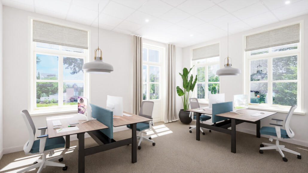 - Volledig gestoffeerde en gemeubileerde kantoorruimtes
